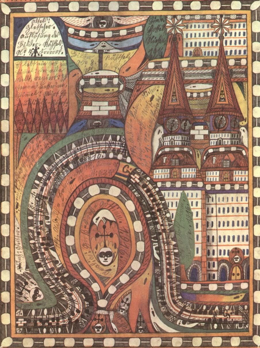 Ancor prima, dalla fine dell’800, nei più importanti ospedali psichiatrici si custodivano opere, con un intento prevalentemente diagnostico, di persone ricoverate. Ad Heidelberg Hans Prinzhorn raccolse molti disegni che ancora oggi sono visibili nella collezione a lui intitolata. Prinzhorn fondamentale per l’Art Brut avendo pubblicato nel 1922 il libro “Bildnerei des Gaisteskranken” in cui sono racchiusi i suoi studi.