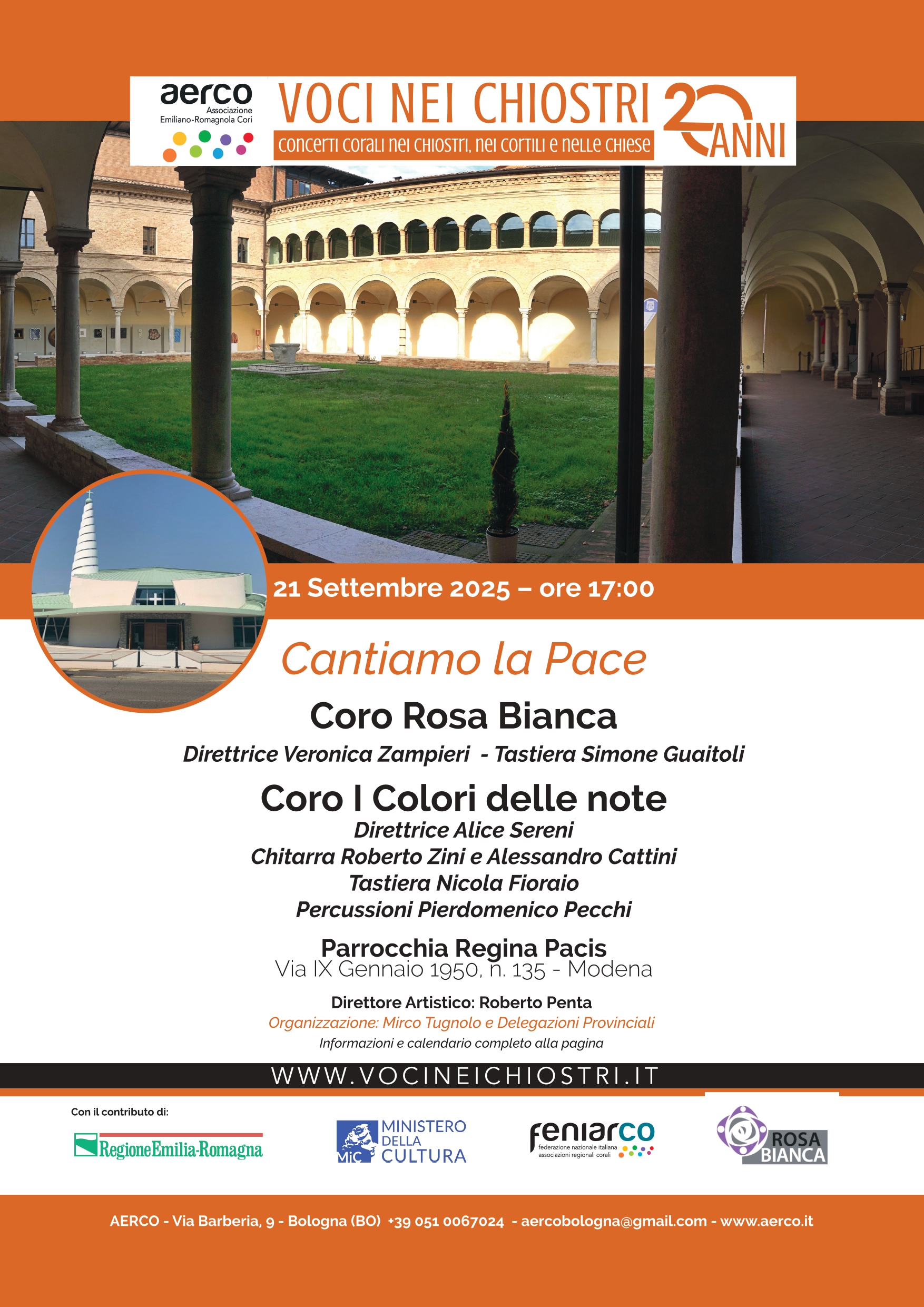 Festival Voce nei Chiostri AERCOConcerto Cantiamo la PaceCoro Rosa Bianca e Coro I Colori delle noteParrocchia Regina Pacis